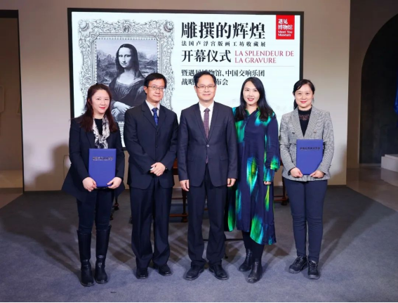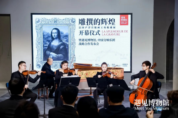 2023年1月12日,《雕撰的辉煌——法国卢浮宫版画工坊收藏展》开幕式暨中国交响乐团、遇见博物馆战略合作发布会于遇见博物馆·北京798馆召开。以音乐为媒,以展览为介,共同为大家献上了一场别开生面的艺术盛宴,实现了交响乐与法国卢浮宫国宝级铜雕版版画的交相融合、画声辉映,带来了双重古典艺术的奇妙体验,用绝美室内乐奏响了2023年新年序曲。